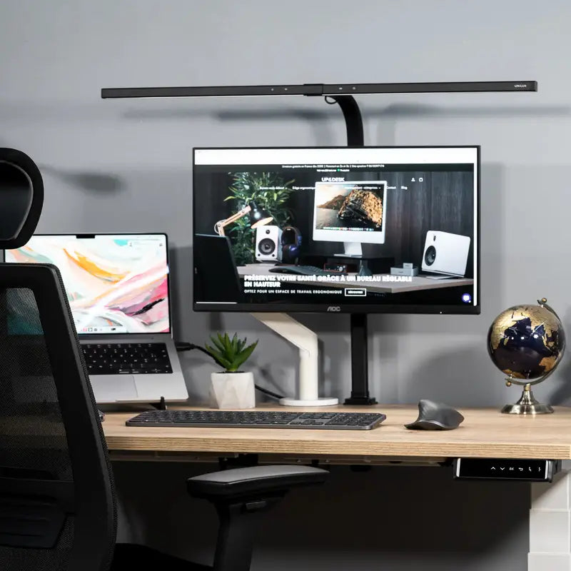 Le bureau assis debout constitue la base d’un poste de travail plus ergonomique, mais les accessoires jouent aussi un rôle important dans le confort d’usage au quotidien. Ils permettent d’affiner l’installation, d’améliorer l’organisation du poste et de mieux adapter l’environnement de travail à vos besoins. Pour vous orienter plus facilement, consultez nos guides d’achat dédiés au bureau assis debout et aux accessoires ergonomiques. Up&Desk propose une sélection d’accessoires ergonomiques conçus pour compléter votre bureau assis debout et créer un espace de travail plus cohérent, plus fonctionnel et plus agréable à utiliser. Selon votre configuration, ces accessoires peuvent faciliter le réglage du poste, améliorer le positionnement des écrans et rendre l’utilisation du bureau plus fluide au fil de la journée. Parmi les compléments les plus utiles, le bras articulé permet de mieux positionner l’écran, le repose-pied peut améliorer le confort des jambes selon la posture adoptée, et la souris ergonomique aide à créer un poste plus adapté à un usage prolongé. L’objectif reste le même : compléter intelligemment votre bureau assis debout, sans compliquer l’espace de travail.