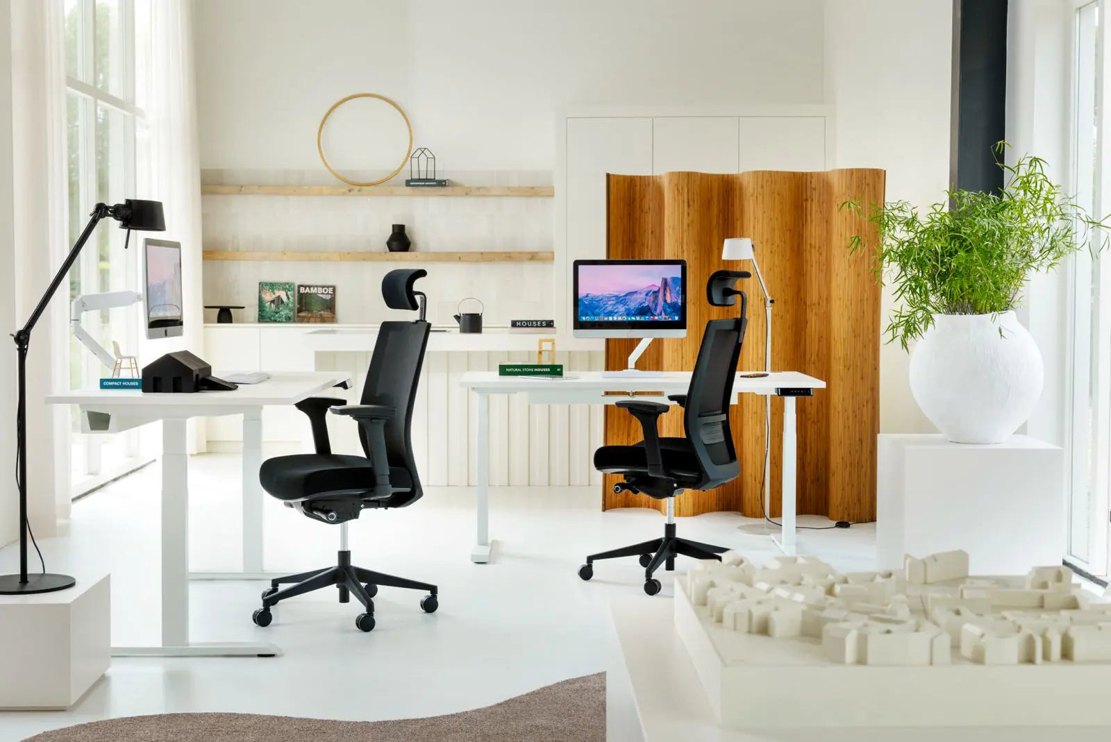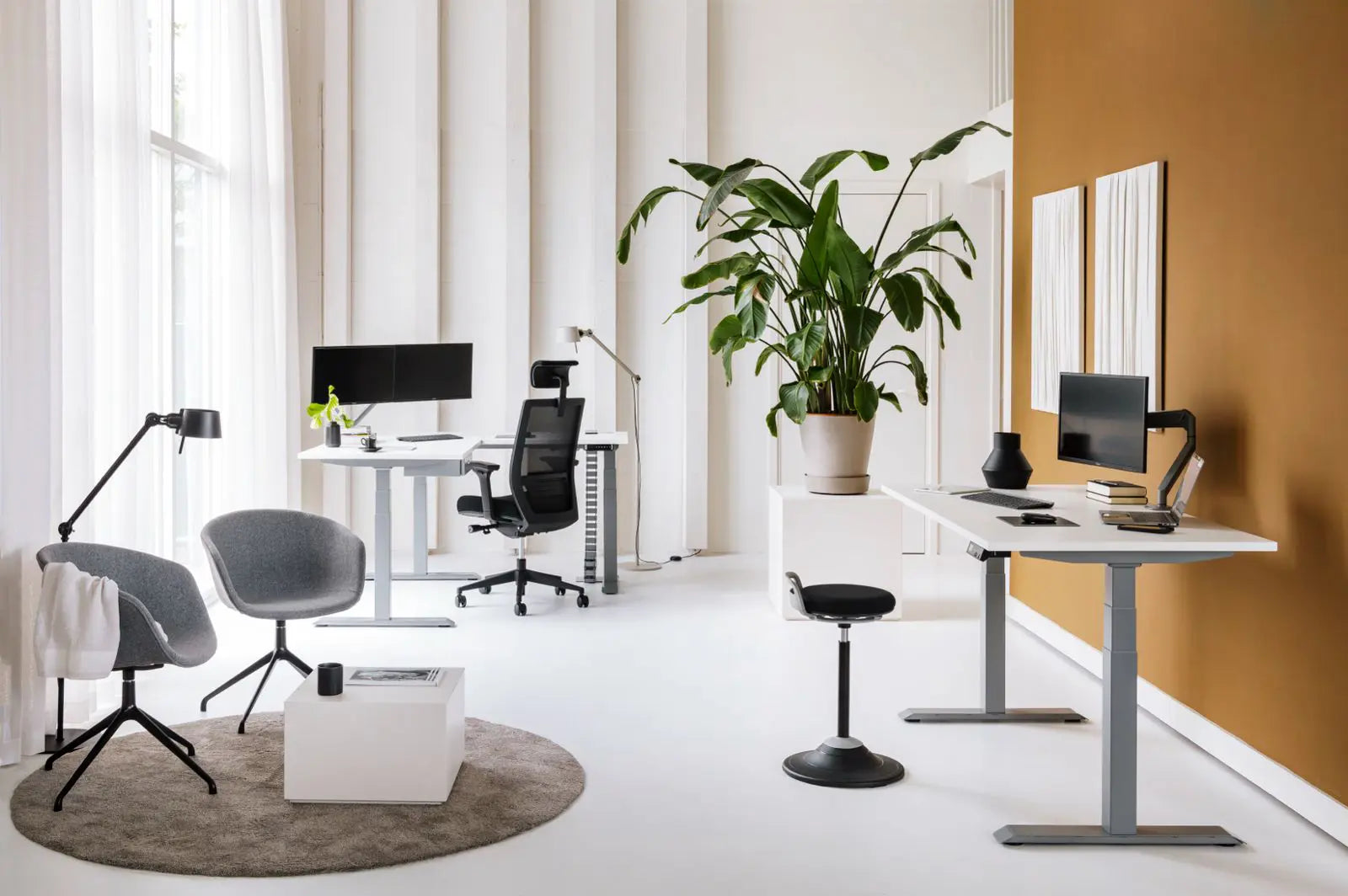 Bureaux assis-debout, piètements motorisés, bureaux d’angle, chaises ergonomiques et accessoires de confort et d’ergonomie.